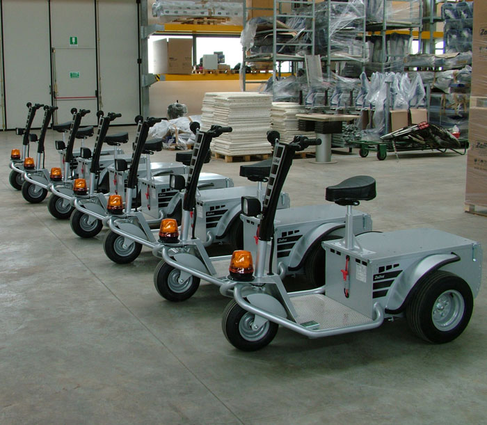 JACK è un veicolo elettrico a 3 ruote con uomo a bordo. Grazie alla sua versatilità, Jack può essere utilizzato per il trasporto e spostamento di personale, per la movimentazione di merci, per i lavori di manutenzione e ispezione all'interno di ospedali, industrie, aeroporti, magazzini, serre e mercati. La salita e la discesa dell'operatore sono particolarmente agevoli e rapide e il pianale posteriore è facilmente accessibile dal sedile di guida con possibilità di aggiungere accessori personalizzabili. Jack ha una capacità di carico di 150 kg. e di traino fino a 750 kg su piano, a seconda del motore con cui il veicolo è equipaggiato. Gli ingranaggi in bagno d'olio rendono la manutenzione del veicolo quasi nulla.